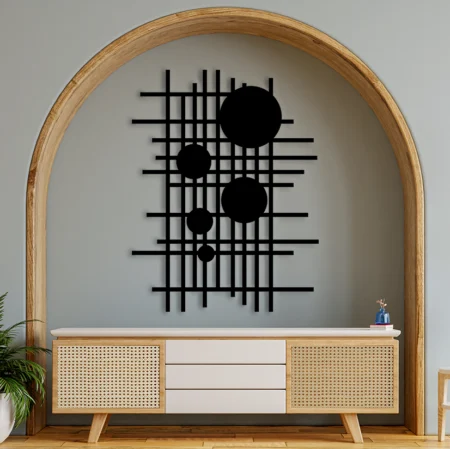 The Abstract Wall Decor by Kuch Khaas is a modern masterpiece that brings minimalist sophistication to your space. Featuring a clean interplay of lines and circles, this metal wall art is designed to add visual balance, rhythm, and a touch of geometry to contemporary interiors.