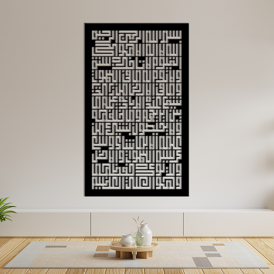 The flowing Arabic calligraphy is carefully crafted to balance traditional Islamic artistry with a modern minimalist form. Its refined composition makes it a powerful centerpiece for living rooms, prayer areas, bedrooms, hallways, and offices—enhancing home décor in Pakistan with both spiritual depth and visual elegance.